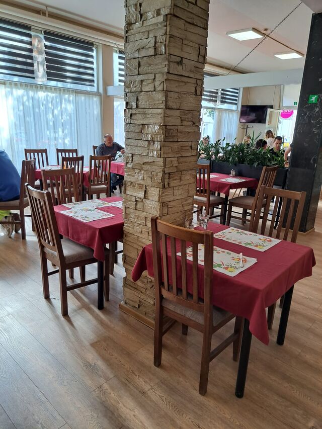 Želimo istaknuti naš poseban kutak koji čini našu lokaciju još posebnijom - našu vanjsku natkrivenu terasu. Terasa je pravo utočište za sve ljubitelje otvorenog prostora i prirode. Ovdje možete uživati ispijajući jutarnje kave, osvježavajuća pića ili jednostavno uživati u slasnim obrocima iz naše ponude.